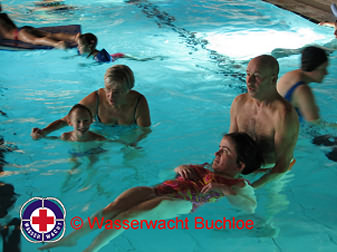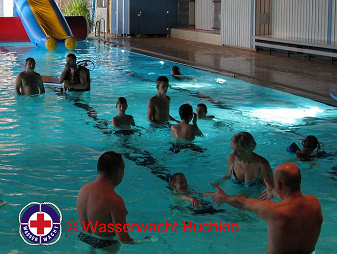Seit 1990 stellt die Buchloer Wasserwacht einmal im Monat eine ihrer Übungsstunden den behinderten Menschen aus Buchloe und Umgebung zur Verfügung. Dieses Angebot wird von einer Gruppe von zehn bis fünfzehn behinderten Mitbürgen regelmäßig genutzt. Willkommen sind Erwachsene, Jugendliche und Kinder (auch in Begleitung ihrer Eltern). |